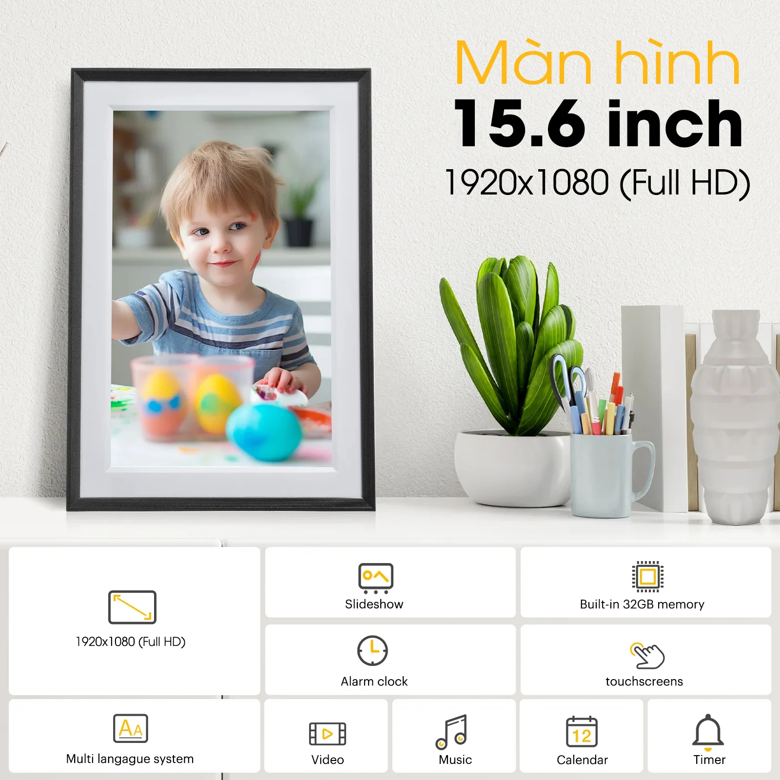 Với kích thước 15.6 inch Full HD, khung ảnh đem đến trải nghiệm hình ảnh sắc nét, màu sắc chân thực. Đây là lựa chọn lý tưởng để trưng bày ảnh gia đình hoặc trình chiếu hình ảnh sản phẩm, video quảng bá tại văn phòng, showroom, sự kiện.