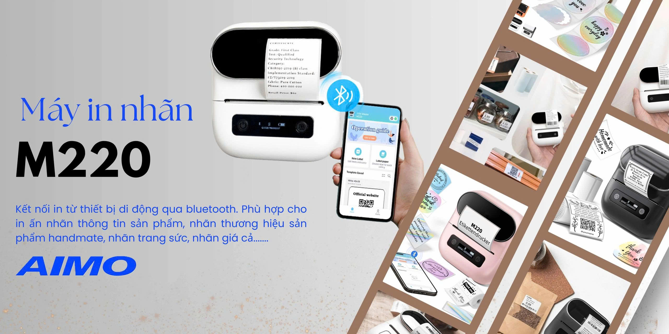 AIMO M220 là dòng máy in nhãn cầm tay thông minh, tích hợp pin sạc, kết nối Bluetooth và in trực tiếp qua ứng dụng Print Master trên điện thoại. Thiết kế nhỏ gọn, thao tác đơn giản, giúp bạn tạo nên những nhãn dán chuyên nghiệp chỉ trong vài giây – mọi lúc, mọi nơi.