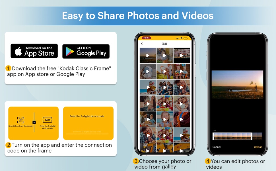 Khung ảnh kỹ thuật số Kodak hỗ trợ nhiều phương thức để người dùng đưa ảnh và video vào thiết bị, giúp bạn dễ dàng lưu giữ và trình chiếu những khoảnh khắc đẹp nhất. Tuy nhiên, mỗi cách tải ảnh lại có ưu – nhược điểm khác nhau, đặc biệt là về chất lượng ảnh/video sau khi hiển thị. Dưới đây là hướng dẫn các cách tải ảnh phổ biến và khuyến cáo để bạn đạt được chất lượng tốt nhất khi sử dụng.