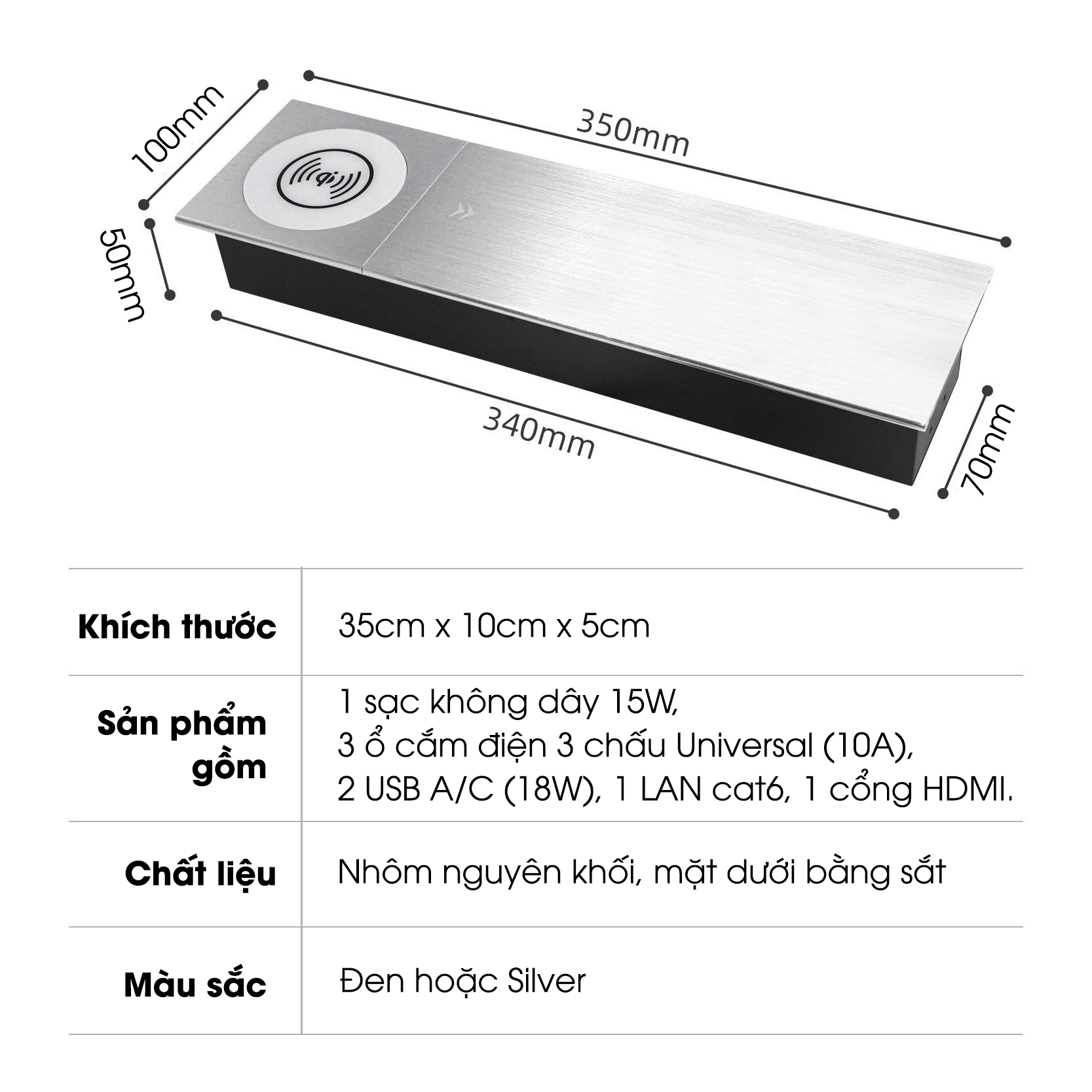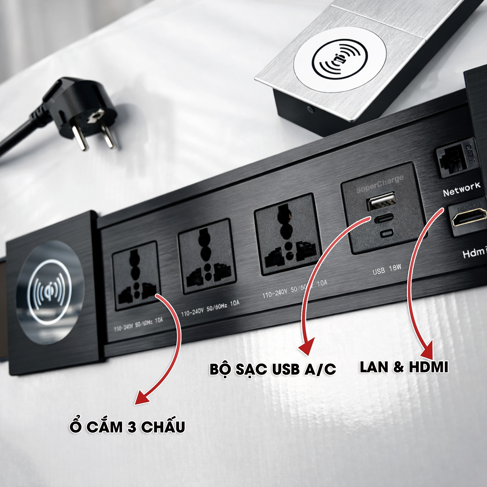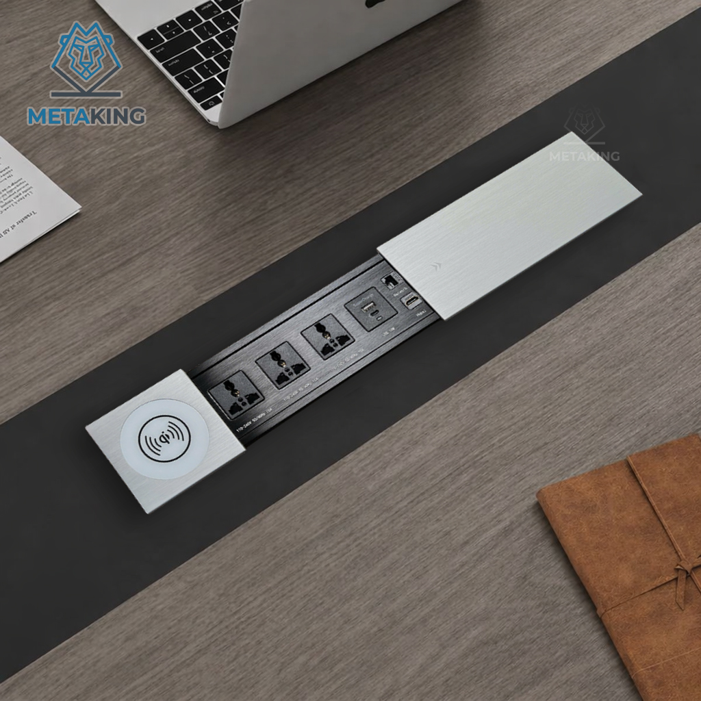 Bộ ổ cắm âm bàn trượt Metaking không đơn thuần là một hộp ổ cắm điện, mà là giải pháp kết nối toàn diện cho không gian làm việc hiện đại: