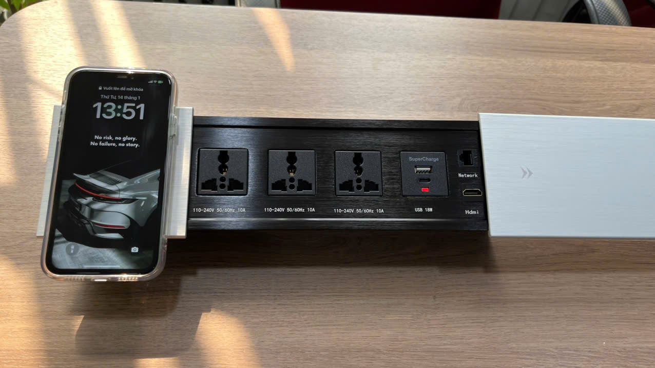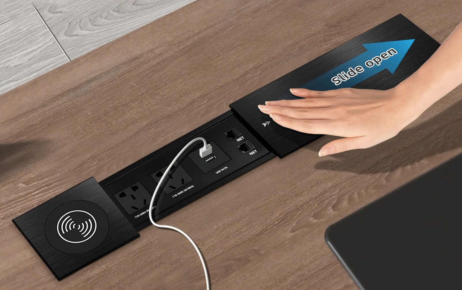 Trong bối cảnh không gian làm việc ngày càng đề cao sự gọn gàng, tiện nghi và tính thẩm mỹ, việc lựa chọn một giải pháp ổ cắm điện âm bàn tích hợp đa chức năng không chỉ giúp tối ưu hóa hệ thống điện và kết nối, mà còn góp phần nâng tầm hình ảnh chuyên nghiệp cho toàn bộ không gian văn phòng. Bộ ổ cắm điện âm bàn trượt mở của Metaking là dòng sản phẩm được nghiên cứu và phát triển dành riêng cho các không gian làm việc hiện đại, nơi yêu cầu cao về sự tiện lợi, an toàn và thẩm mỹ. Với cơ chế trượt mở linh hoạt, ổ cắm được ẩn gọn dưới mặt bàn khi không sử dụng và chỉ cần thao tác trượt nhẹ để mở ra khi cần, giúp tối ưu diện tích sử dụng và giữ cho mặt bàn luôn gọn gàng, sạch sẽ.