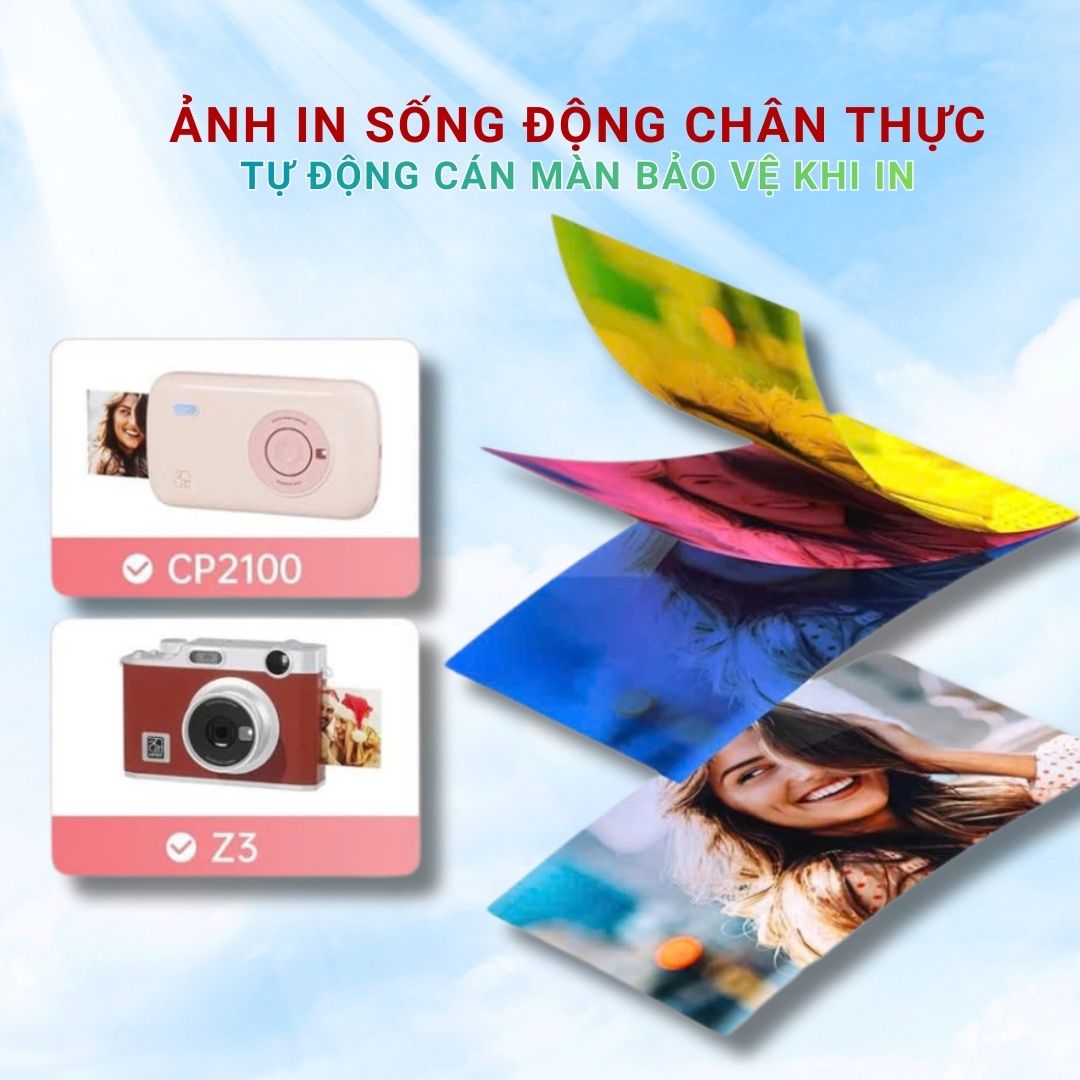 𝟑. 𝐓𝐮̛𝐨̛𝐧𝐠 𝐭𝐡𝐢́𝐜𝐡 đ𝐚 𝐝𝐚̣𝐧𝐠: Phù hợp với cả hai dòng máy in ảnh mini phổ biến hiện nay là CP2100 và HPRT Z3, sản phẩm đáp ứng nhu cầu in ảnh gia đình, cá nhân, sự kiện hoặc du lịch.