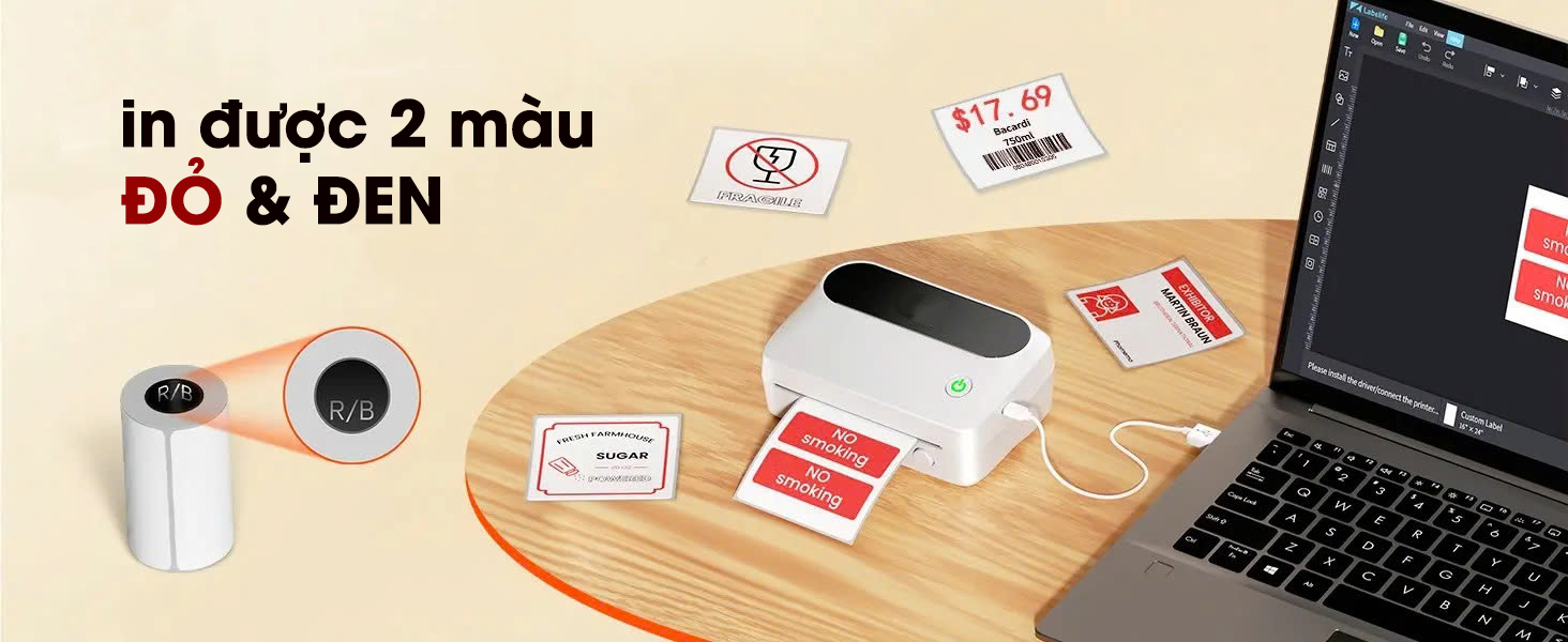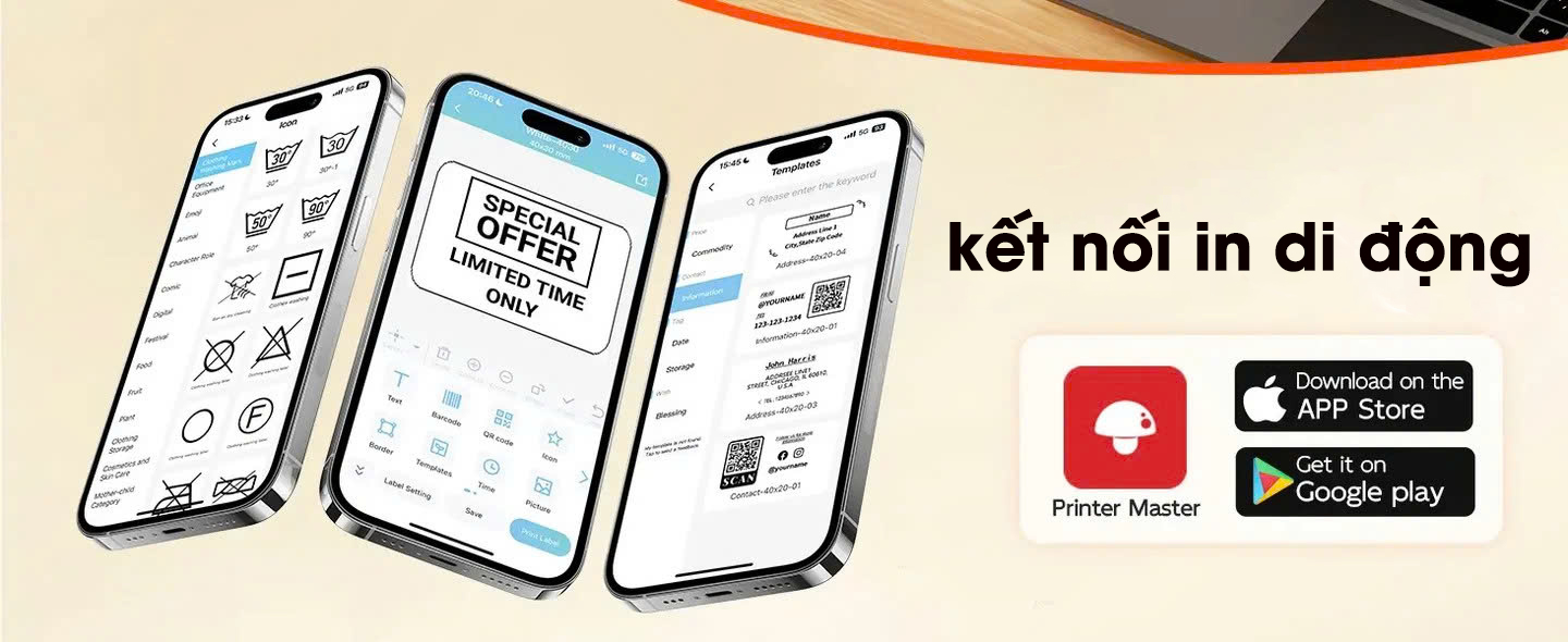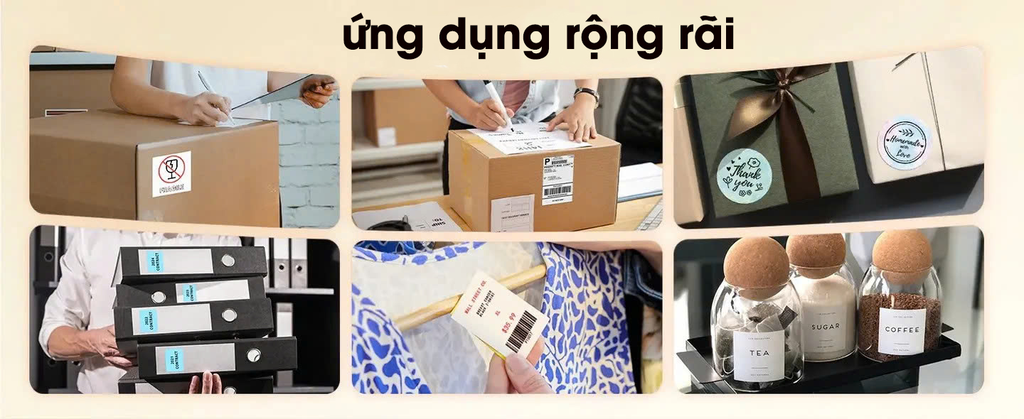 Barcode / mã vạch: nếu sử dụng nhãn nhiệt phù hợp, bạn có thể in mã vạch, mã QR để kiểm soát kho, quét hàng nhanh hơn.