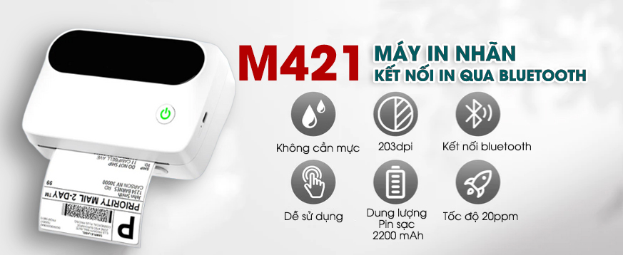 In tem vận chuyển (shipping labels): M421 hỗ trợ khổ nhãn khá lớn (từ ~40mm đến ~106mm) nên có thể in tem 4x6 inch, rất phổ biến cho các gói hàng.