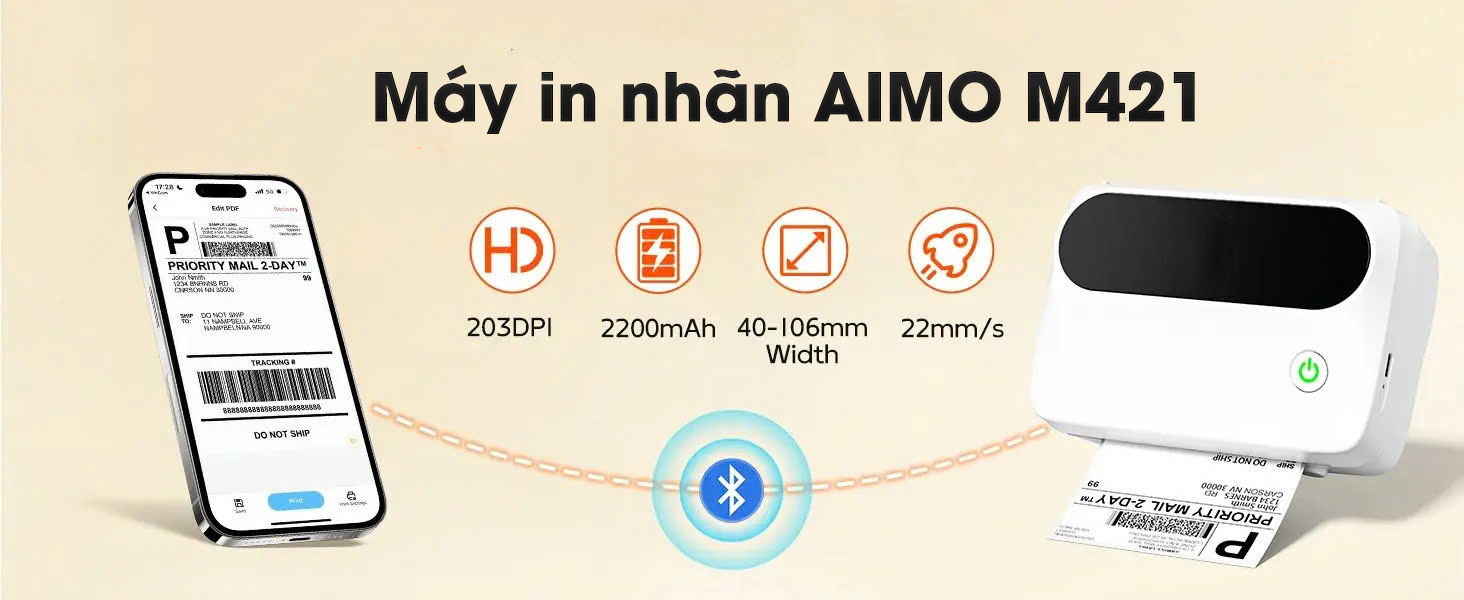 Với thiết kế gọn nhẹ, in không cần mực, kết nối dễ dàng qua Bluetooth, AIMO M421 là giải pháp in tem nhãn tối ưu dành cho các cửa hàng nhỏ, shop handmade, kinh doanh trang sức và phụ kiện.