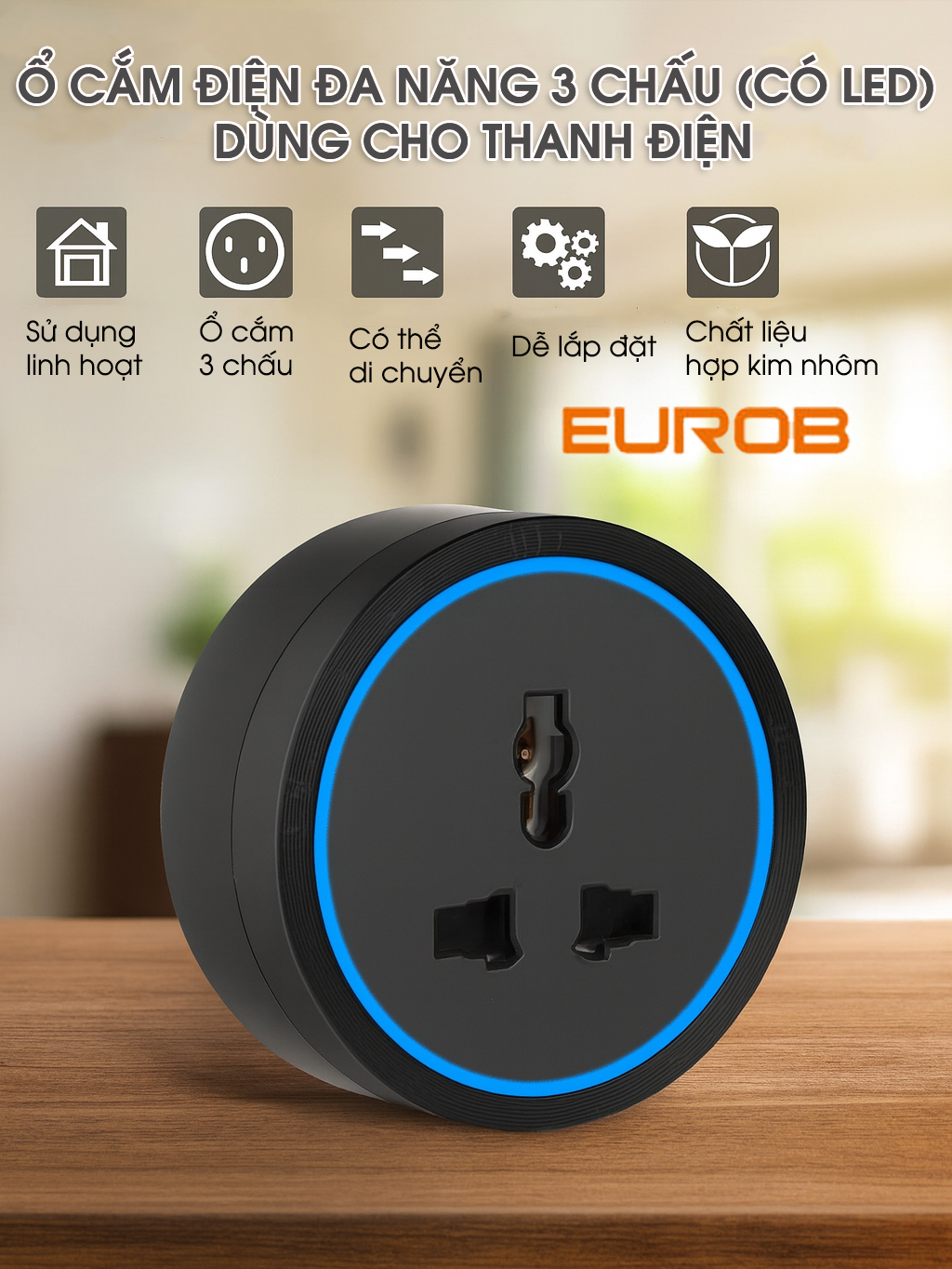 Ổ Cắm Đơn Eurob A1 Universal I Đen I BH 2 Năm