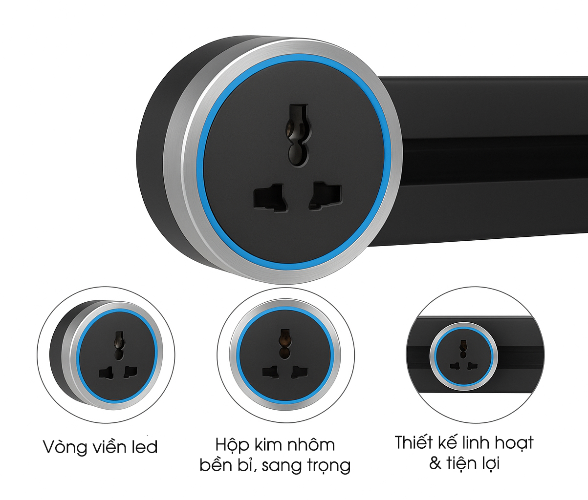 Với kích thước nhỏ gọn, sản phẩm dễ dàng tích hợp vào hệ thống thanh ray mà không chiếm nhiều diện tích. Viền kim loại tạo điểm nhấn sang trọng, phù hợp với nhiều phong cách nội thất. - Khả năng chịu tải cao, hiệu suất ổn định