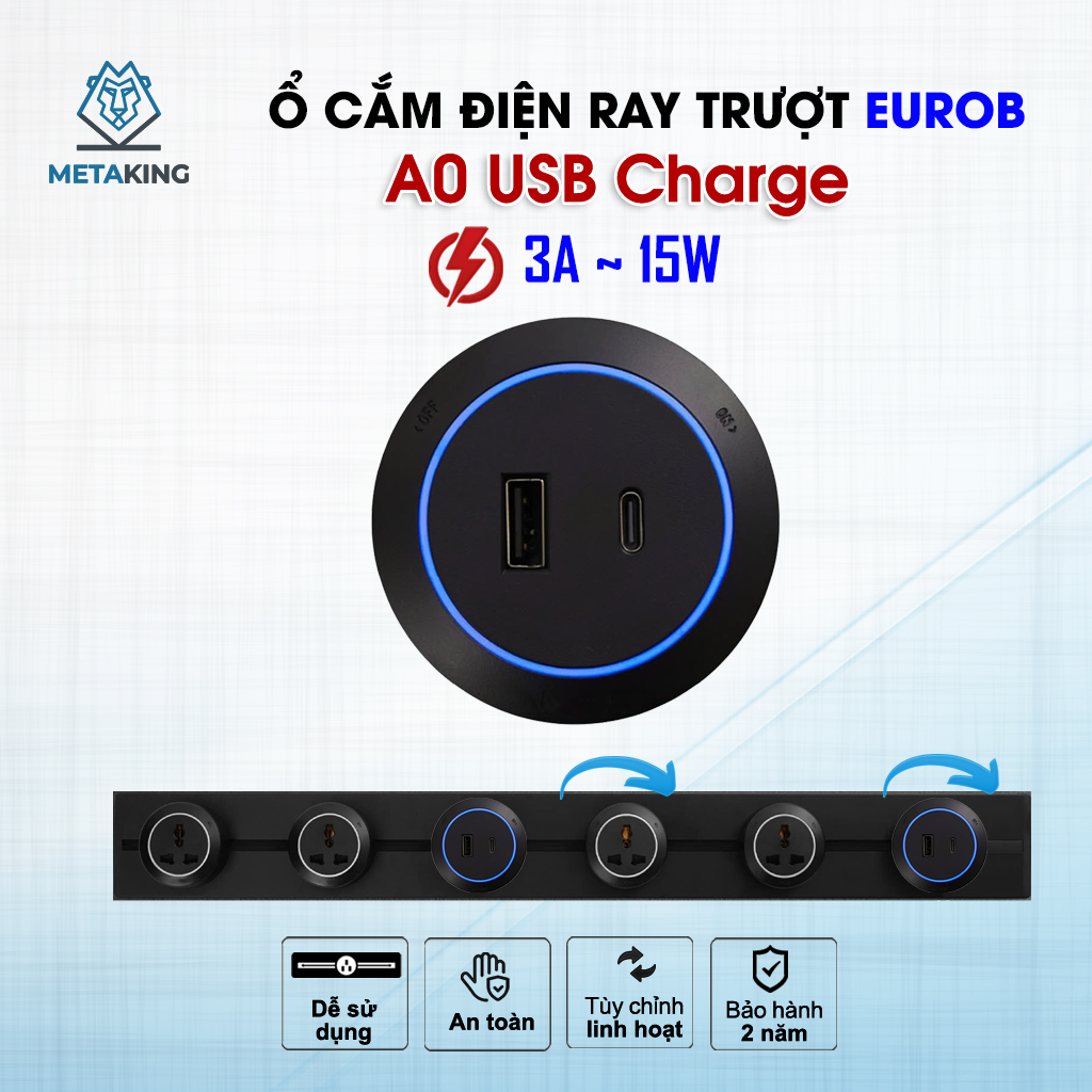 Ổ cắm USB Type AC của Eurob là giải pháp hiện đại, tiện lợi cho các hệ thống thanh ray. Với khả năng sạc nhanh lên đến 15W qua cổng Type-C và 10W qua cổng USB, sản phẩm đáp ứng tối đa nhu cầu sử dụng điện của các thiết bị thông minh.